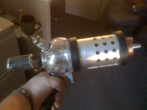 El chasis y carcasa del osciloscopio entraron en el juego. Tuve que mendigar alrededor de la casa para un reductor de tubo ABS de un viejo proyecto de fontanería. Cortar en dos y que utiliza para mantener mi protección.