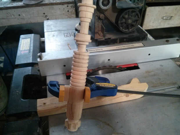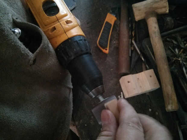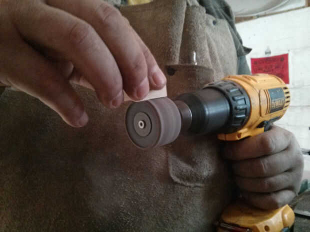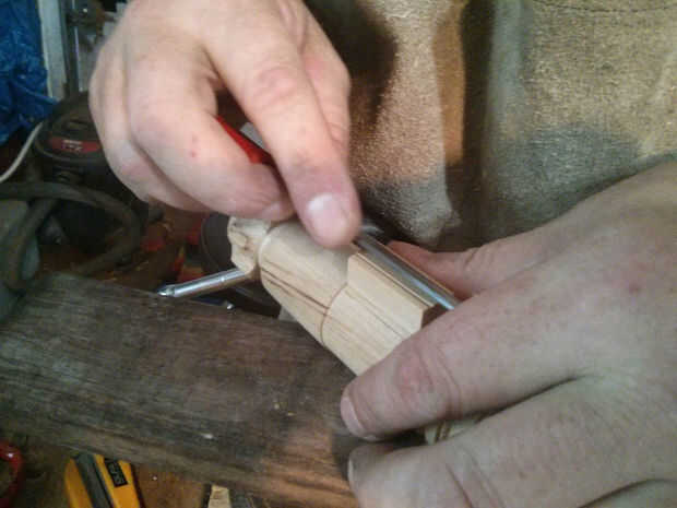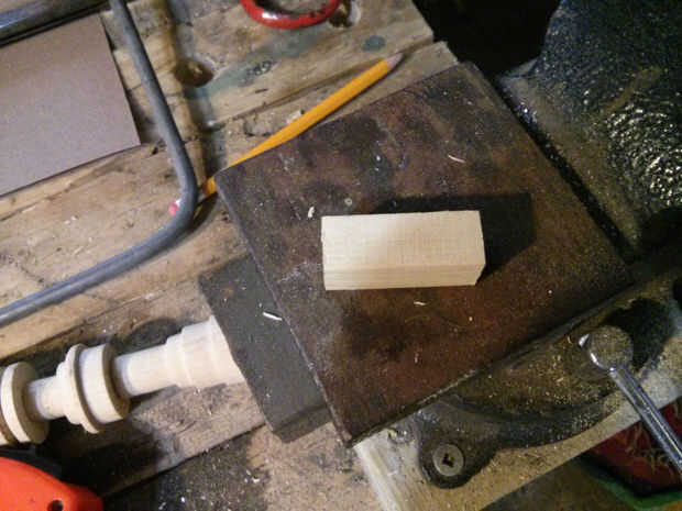 El bloque del interruptor fue aproximadamente 3/8" alto x 3/8" de ancho por 1.5" de largo, que utilicé una lijadora de tambor que era aproximadamente el diámetro de mi sable de luz a cóncavo de una superficie de ella. Esta superficie se le pegada al cuerpo del saber de sí mismo. Una vez el bloque completo, pegado y me sujeta en su lugar.