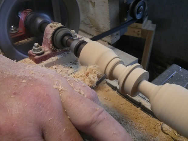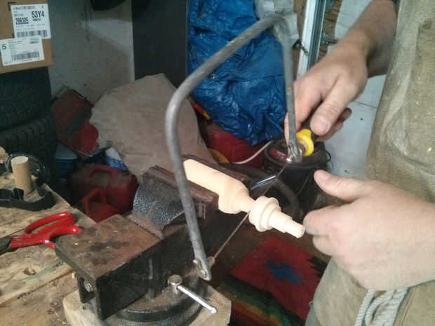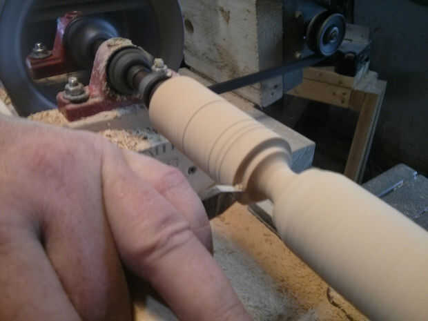 Empecé la misma manera como lo hice con el mango por localizar el punto más alto y trabajar hacia abajo desde allí. Usé la partida tomó para darle bordes crujientes agradables entonces una gubia o un punto redondo para eliminar la mayor parte del material.