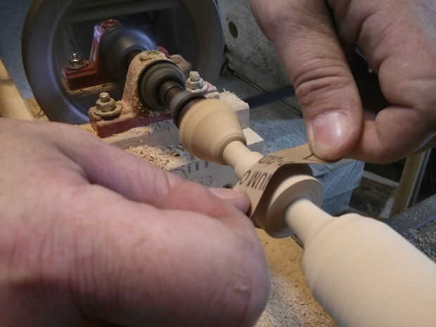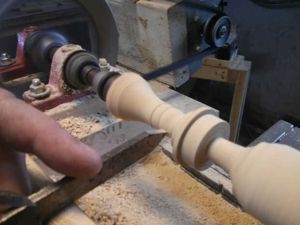 Otra vez, como antes, enarenada con granos progresivamente menores. Por último, retirar el exceso de material usando una sierra de marquetería.