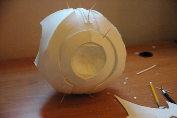 corta la espuma en las diferentes formas que constituyen la "cáscara" de Wheatley. Utilizamos imágenes de referencia en el juego y algunos fan hace modelos 3D para determinar estas formas.