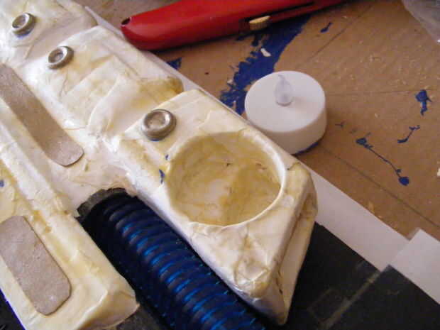 Utilice una broca forstner o taladro para obtener un agujero de diámetro 1 1/2 pulgada que se ajuste a la vela del LED.