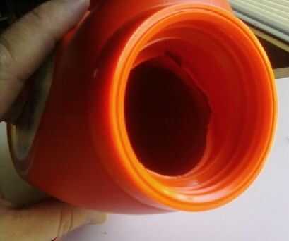 A continuación rompa el vertedor (o recortarlo). La boquilla de plástico bastante rígido y tirando hacia abajo el pico encajará (alerta de vuelo ruina!).