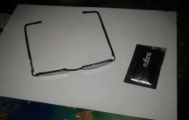 así que me senté en mi gafas hace un par de semanas y aunque no rompen entonces (incluso después de doblez/remodelación de les), cinco días atrás, en medio de ponérselos, cayó, y uno de los brazos interrumpió, justo en la bisagra.  Compra de un brazo
