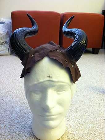Esta parte es realmente depende de usted cómo desea pegarlas, pero encontré esta manera trabajada para mí (tonto aunque parezca al principio). Tomé retazo (si usas loco pegamento Asegúrese de que este tejido no contiene algodón porque se inicie un incendio y estoy suponiendo que es algo malo para la salud...) y cortar un agujero en la tela que era más pequeño que la base de los cuernos. Luego se deslizó el cuerno en empujar al tejido hacia la base y pegar a la tela a la corneta. Entonces cubrió a la tela en el esqueleto Fosshape, posicionamiento los cuernos donde pensaba ir. Entonces corte el retazo más allá de las clavijas, y loco pegado el s$ & %t de la tela, asegurándose de conseguir pegamento loco entre el Fosshape y la tela para fusionarlos. El tejido se endurece cuando pega, así que los cuernos se convirtieron en inmóvil y adjunto. Luego quité los pernos (Cerciórese de no pegar los pernos en la tela).