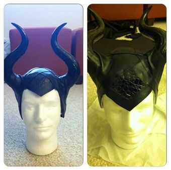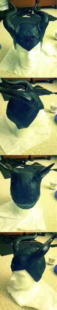 Al llegar a la cresta de su cabeza, es donde se envuelva la base de los cuernos en vinilo y trabajar hacia atrás para quedar donde ya has cubierto el casco en vinilo.