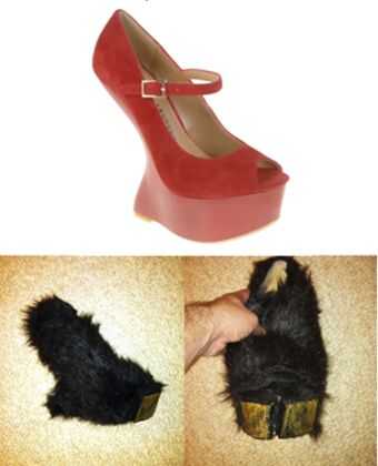- Luego cubrí el rojo del zapato en pequeños parches de tela de la piel. Sugiero hacerlo en piezas para cubrir cualquier curvas correctamente y permitiendo superposición. He visto a mucha gente usar pegamento para esto, pero decidí poner el lado del gancho de un parche de Velcro circular en el zapato y el lado de la tela en la parte inferior de la tela. Así, si necesito cascos de colores diferentes, yo puedo solo cambiar la piel. También es bueno si la piel consigue arruinada o sucio. Para cubrir la parte superior de los pies, he creado una rebanada grande de tela para la parte superior con las aletas en los lados como el zapato de Velcro en la foto. De esa manera pude abrir la parte superior, calzarse el zapato apriete la correa y entonces cierre la piel sobre mi pie todo. Cuando se mide a la tela para esta parte, asegúrese de tener su pie dentro del zapato por lo que es lo suficientemente grande y no demasiado apretado. También puedes llevar un tacón de aguja regular y serrar el talón, pero me di cuenta de que hay algunos más estabilidad (sobre todo porque no he nunca anduve en tacones antes!).
