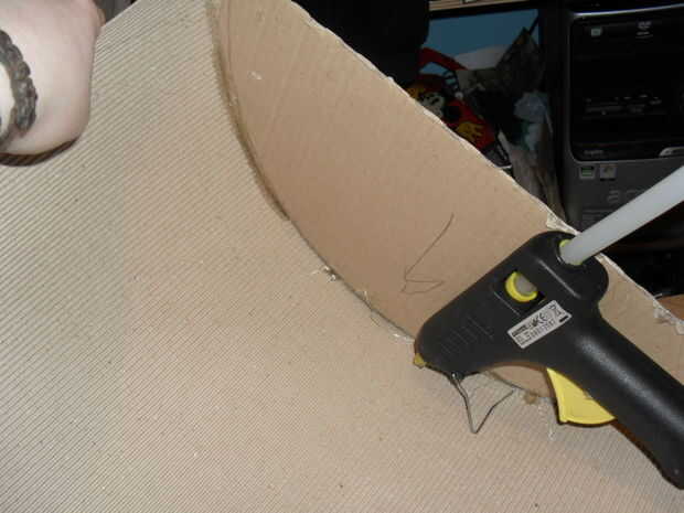 Me pareció que lo mejor pegar las secciones redondeadas antes de cortar el techo que cubre a la medida, ya que usted tendrá unas pocas pulgadas para formar una bisagra entre las dos secciones (la tapa y la base de la caja)