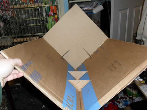 Para formar la cerrada final de la artesa cortar un cuadrado de cartulina y pegado en lugar en mucho la misma manera que el último paso. La Plaza del cartón debe ser el mismo ancho que las dos piezas rectangulares en el ultimo paso. También aplican a esta sección con dos triángulos pequeños de 90 grados.