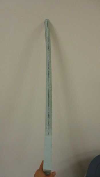 Como dije antes estaba usando los restos, así que mi espuma era realmente mucho más gruesa que quería. Para remediar esto empecé cortando por la mitad. entonces yo sólo cuidadosamente recórtalo.