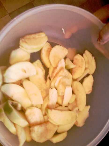 Pelar y cuarto de las manzanas. Luego cortar en rodajas finas.