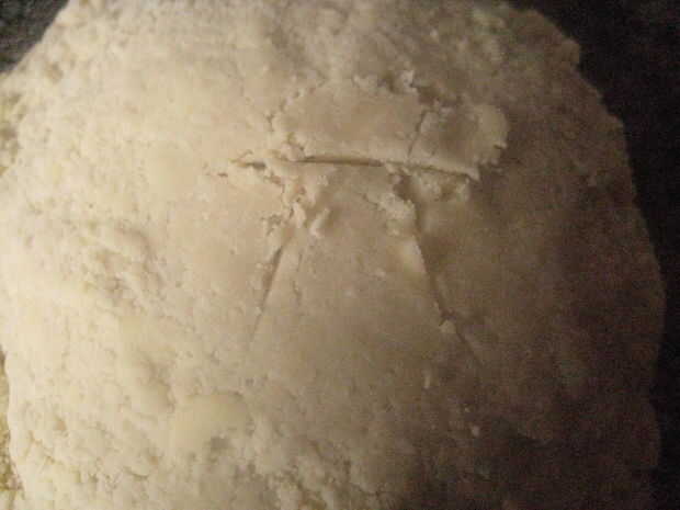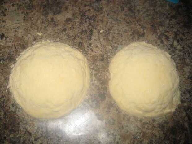 Separar la masa en 2 partes iguales. Formar dos discos de una pulgada de espesor. Enrolle para arriba y ponerlos en la nevera durante una hora o hasta dos días.