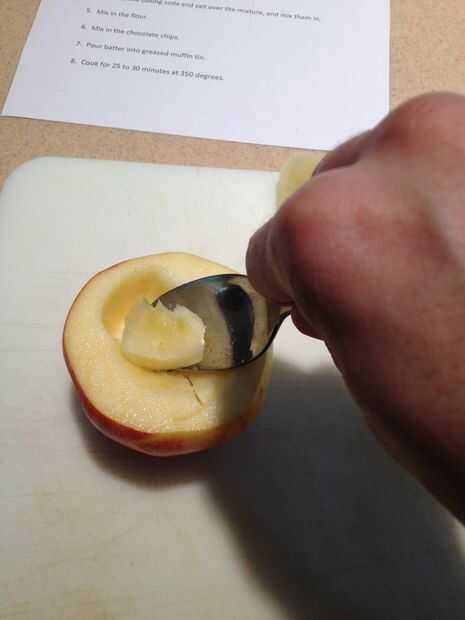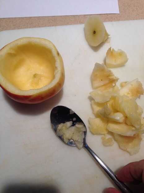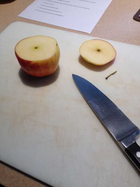 Para servir el chai, yo corte una manzana en una taza. Cortar la parte superior, había excavada el contenido con una cuchara y vierte el chai caliente dentro.