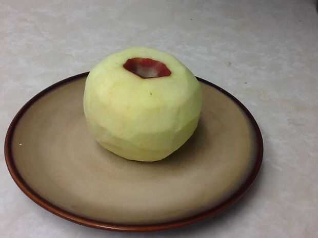 8. vierte el relleno de pera y utilizar un cuchillo a remolinar alrededor (Nota Asegúrese de que el relleno es por lo menos media pulgada desde el borde de la cacerola).