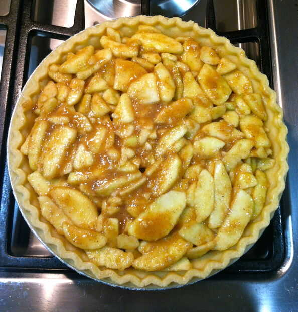 Dejar la corteza descongelación como preparan su relleno de manzana.