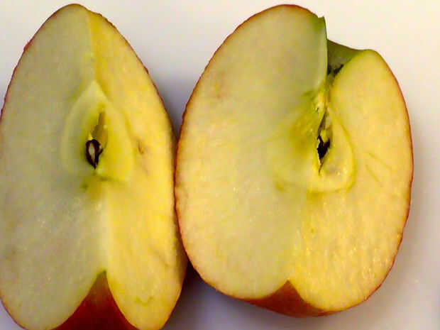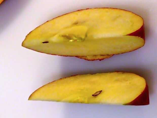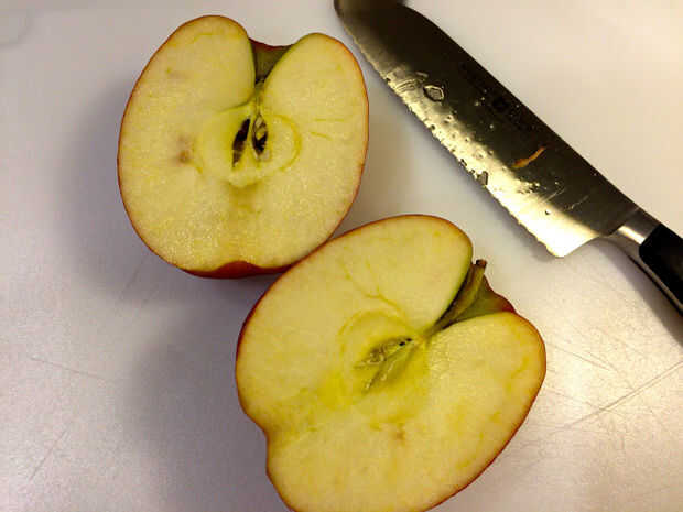 Para cada una de las manzanas, cortar cada uno en la mitad, luego cortar por la mitad, luego por la mitad otra vez.