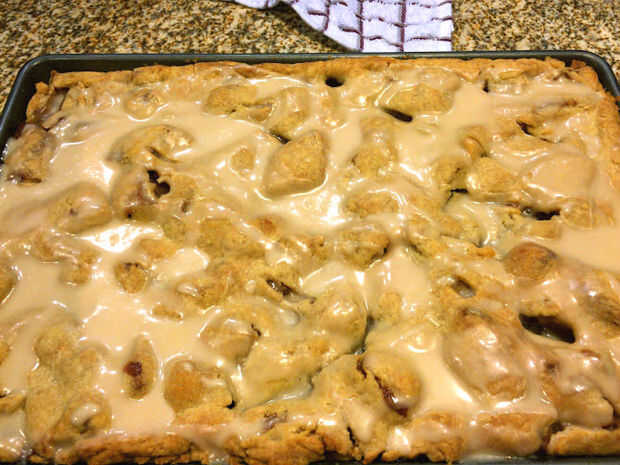 Salsear ligeramente cálida manzana danés. Enfriar completamente y cortar en cuadrados.