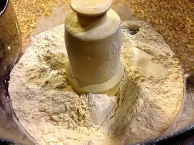 Colocar la harina, el azúcar y la sal en el tazón de un procesador de alimentos equipado con una cuchilla de acero y pulso unas cuantas veces, para mezclar.