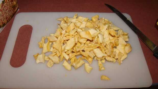 En un tazón grande o cacerola mediana combine aproximadamente 1/4 de taza de azúcar morena, 2 cucharadas de miel, la cucharadita de canela molida (o un canela stix) y muele un par de sal (aproximadamente media cucharadita) y 3 tazas de sidra de manzana o jugo, llevar a fuego lento rápido entonces retirar del fuego (yo usé el horno de microondas) mientras se está calentando el líquido picar las manzanas deshidratadas en trozos más pequeños