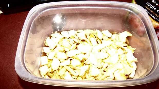Retire el líquido del fuego y agregar la taza de trigo, cubierta y en el refrigerador hasta que el líquido y fresco ha sido absorbed.about una hora.  En un recipiente separado agregue sobre una taza de jugo/sidra de manzana a las manzanas secas picadas y microondas por 2 minutos (o el jugo a fuego lento y añadir a las manzanas) dejar enfriar en el refrigerador.