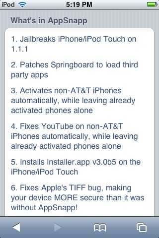 Jailbreak tu iPod Touch desde 1.1.1 es fácil. Abrir Safari en tu iTouch y vaya aquí:
