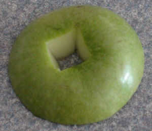 Una vez que es ahuecada lejos bastante necesita cortar un cuadrado de la parte superior de la manzana Si usas una vela, de lo contrario cuando se pone la parte superior en la manzana que se apague la vela.