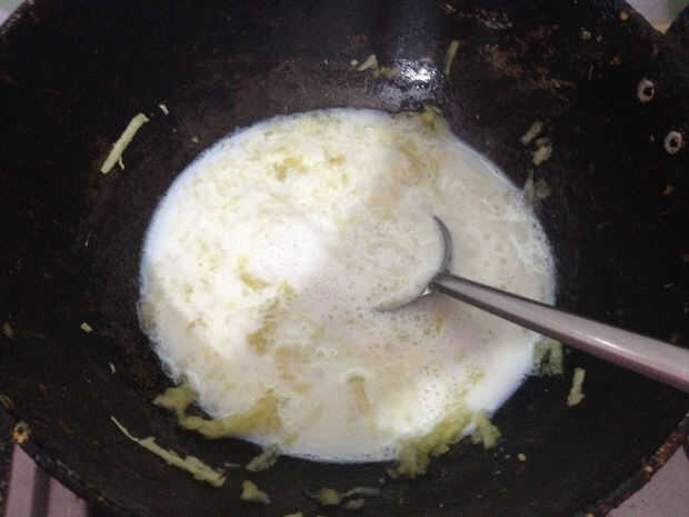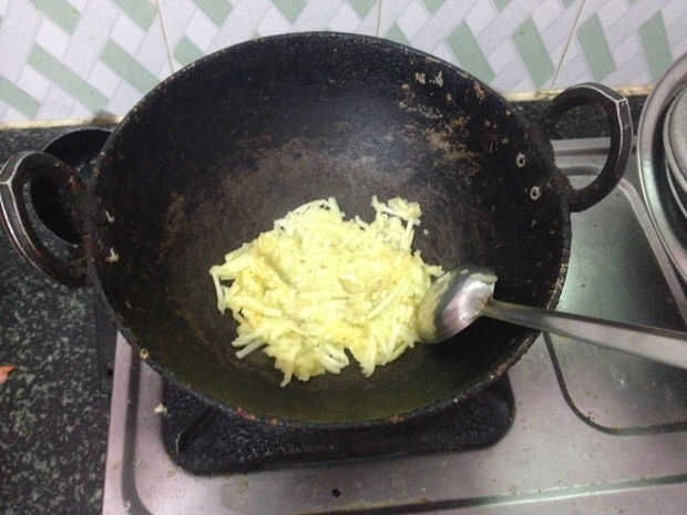 Calentar una sartén, agregar las manzanas ralladas y cocine a fuego medio.