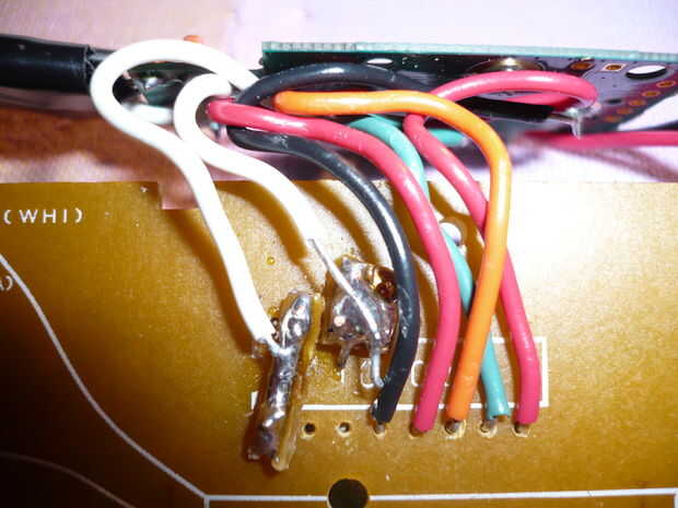 Entonces, basta con soldar los cables de cada agujeros necesarios. Tener cables, porque es más fácil cortar el final, de lo contrario.