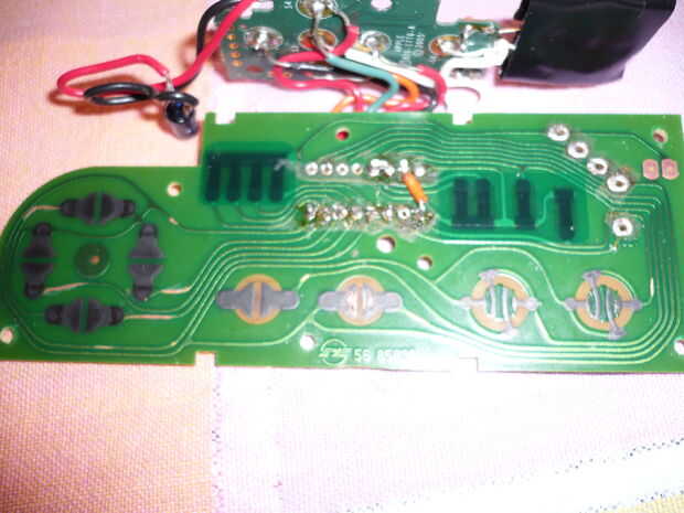 Como se aprecia en el cuadro 3, había soldado el botón A y B junto, comienzo y seleccionar juntos. Quería reproducir/pausa con A o B y el uso del menú del control remoto con Start o Select. Utilizo algunos Veroboard (tira-board) para la soldadura de ambos botones. Es opcional. Quería que mi control remoto para ser así, pero no tienes que.