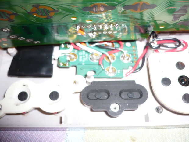(18/05/2008) editar: hoy recibí un error. Cuando estaba presionando el área sobre la sección Select, Start y Nintendo, el controlador estaba haciendo el control izquierdo. He añadido algunos cinta eléctrica sobre los alfileres y ahora, todo funciona muy bien.