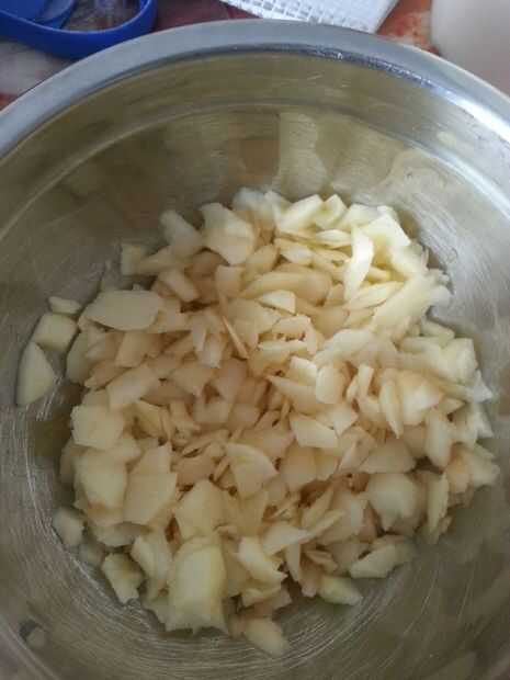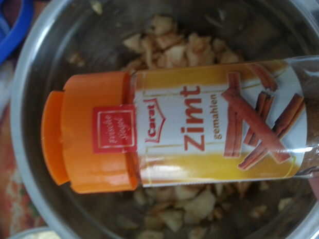 picar las manzanas en finas peces y añadir zimt 2 cucharadas y mezclar para difundir el zimt uniformemente en sus manzanas