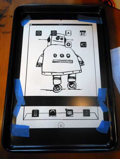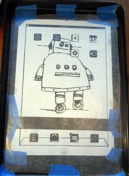 A continuación, tomar la impresión y cinta en la posición en la hoja de galleta. Utilizando una hoja de papel de cera, completamente cubrir la imagen y asegure en su lugar con cinta adhesiva.