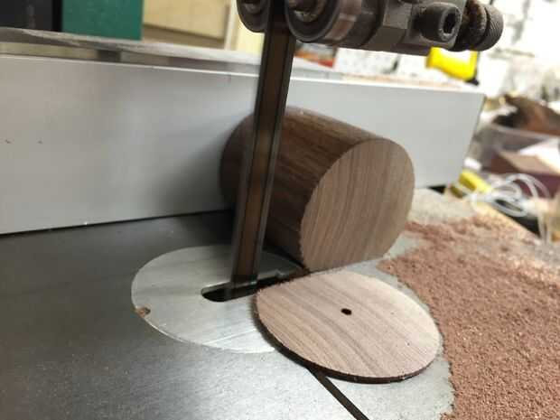 Si tienes una sierra de cinta, puede utilizarlo para viaje de la parte superior. Mina tengo configurado con una hoja de reaserrado y consiguió una sedosa textura suave cuando se corte el área que tiene las marcas de centro de unidad.