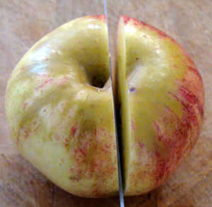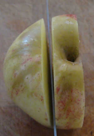 Corte en cualquier sección de la manzana que quiere, he encontrado que utilizando el elemento con las semillas no era una buena idea porque las semillas crean puntos débiles que rompe muy fácilmente.
