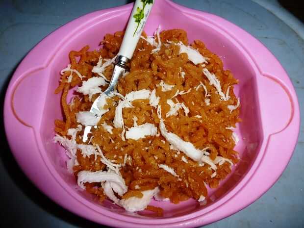 Una sencilla receta para hacer fideos con harina de maíz y manzanas. Aquí, he utilizado la pasta de manzana para hacer la masa para los fideos. Se puede utilizar harina de maíz o harina de arroz, tanto gusto delicioso.