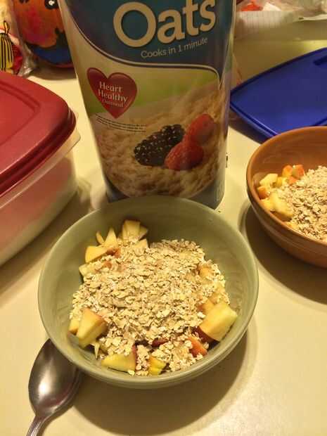 Añadir algunos avena.  Generalmente la globo ocularlo, pero si usted necesita un número exacto, vamos a llamarla 1/3 de taza.