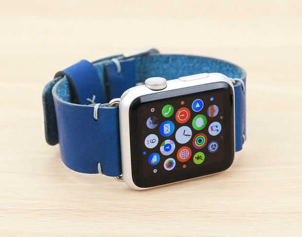 Hay que ir! Una mano bien cosido y pulido correa de cuero para tu Apple Watch. Cuando demuestras que sólo dicen "sí, es el proyecto que he trabajado en con Jony Ive." :)