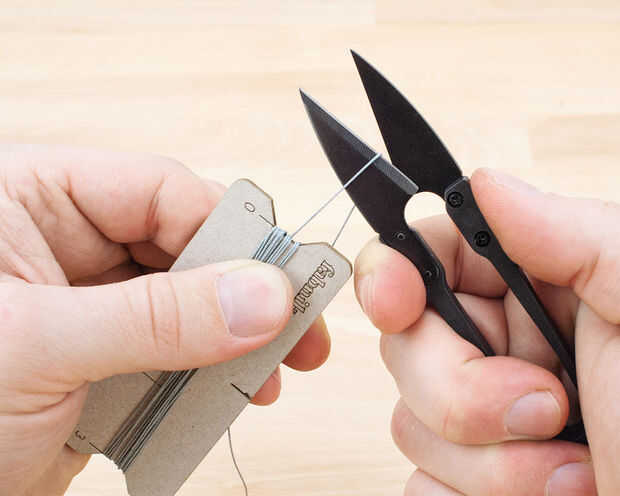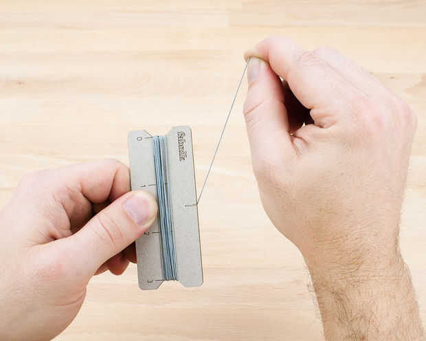 • Nuestra tarjeta de hilo es 3 pulgadas de ancho, así que mida 4 longitudes (o 2 vueltas completas) y cortar con las tijeras.