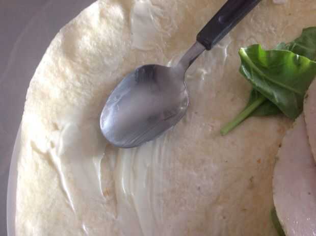 Extender la mayonesa y la mostaza en la tortilla