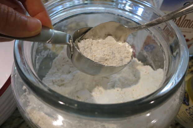 * Vierta la harina en el vaso medidor y nivele con la cantidad adecuada para la receta.