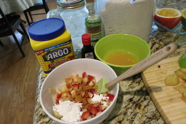 Añadir la fécula de maíz, canela, harina y vainilla extracto al bol y mezclar bien.