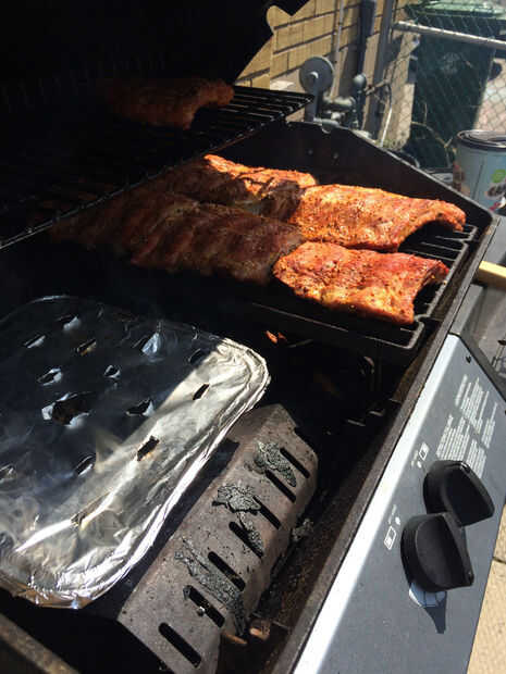 3 - una vez que vea humo añadir las costillas y gire el quemador hasta mediana-baja y cierre la tapa.