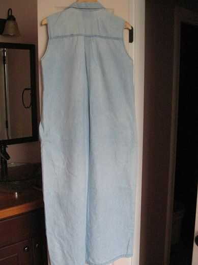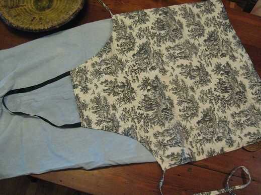 Preparar la tela. Corté un vestido viejo. Sí, era grande. Usé otro delantal como un patrón. Acabo de poner un viejo encima del dril de algodón y corte. Girar bajo los bordes crudos y puntada de la máquina. Usé el dobladillo existente del vestido.