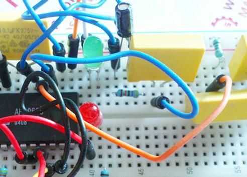 Poner la resistencia de 4,7 K R6 en el tablero de pan y hacer un extremo para conectar el 0.1uF condensador C2