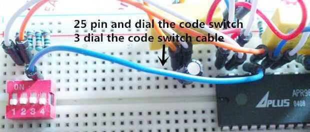 3 Conecte el pin25 de APR9600 para la esfera n º 3 del interruptor dip.