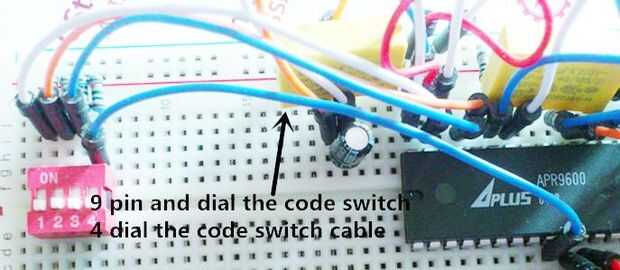Paso 16: Conecte las clavijas del APR9600 a la marca del conmutador dip