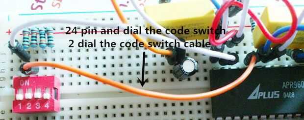 2 Conecte el pin24 de APR9600 No.2 el teléfono del conmutador dip.