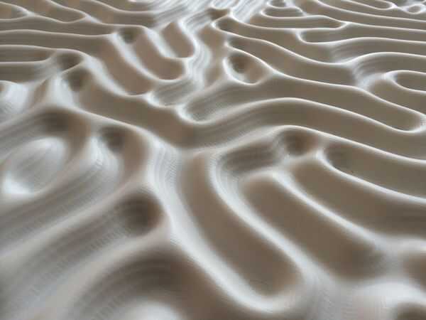 Fresado CNC crear formas 3d, pero el 3d sólido no es necesariamente el centro de la pieza final. Funciones 3D hacen una superficie interesante mediante la introducción de textiles/texturas en él. Una superficie en el espacio puede bloquear (tejas arquitectónicas ej.), reflejar (mirror ej.), servir como un espacio en blanco (ej. proyección mapping, mapping) de lona, o simplemente sirven para su propia artística (ej. pintura mural). Los siguientes ejemplos muestran trabajos CNC que crean interesantes características superficiales.