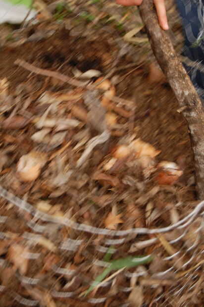 Remover para incorporar el compost, hojas y del suelo junto con la horquilla o rastrillo.