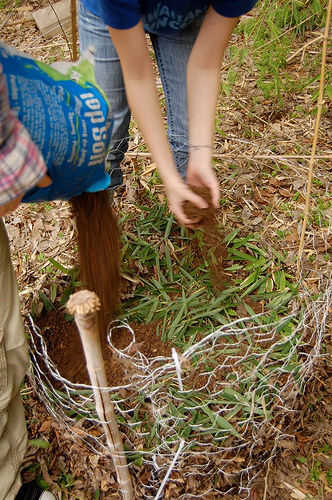 Añadir una capa de suelo, suficiente para cubrir las hojas.